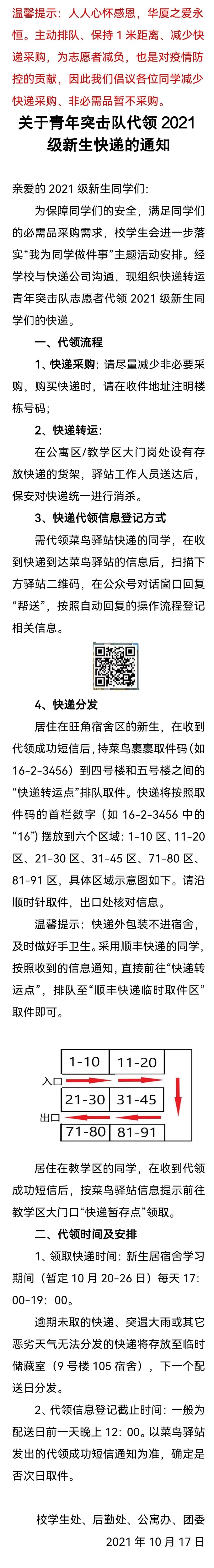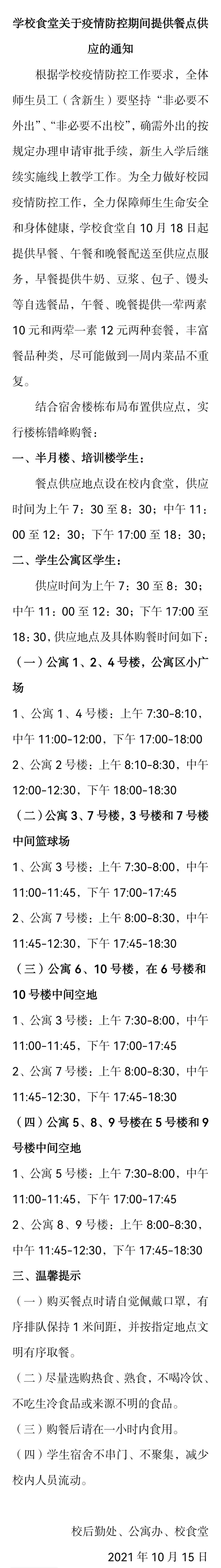 3、为切实保护同学们的身体健康,减少人员流动和聚集,严格执行“非必要不外出”、“非必要不出校”,确需外出的按规定办理申请审批手续。新生入校后,将安排为期7天的线上学习,请同学们在宿舍内完成学习任务和线上班会等活动。在此期间,不得参加老乡会等组织,不得参加聚餐和其他聚集性活动。