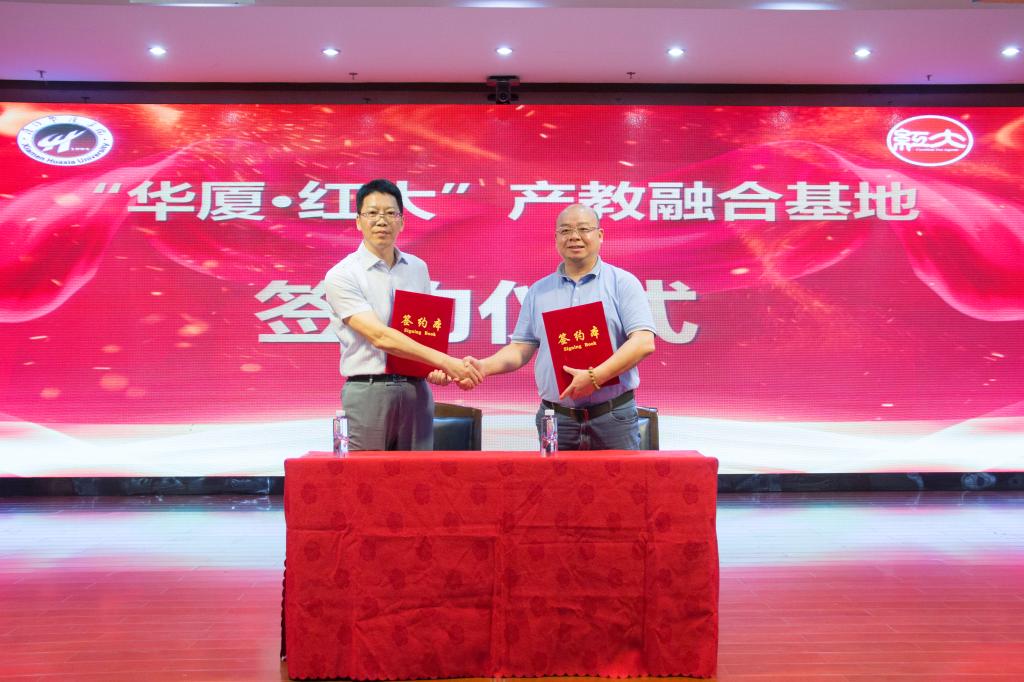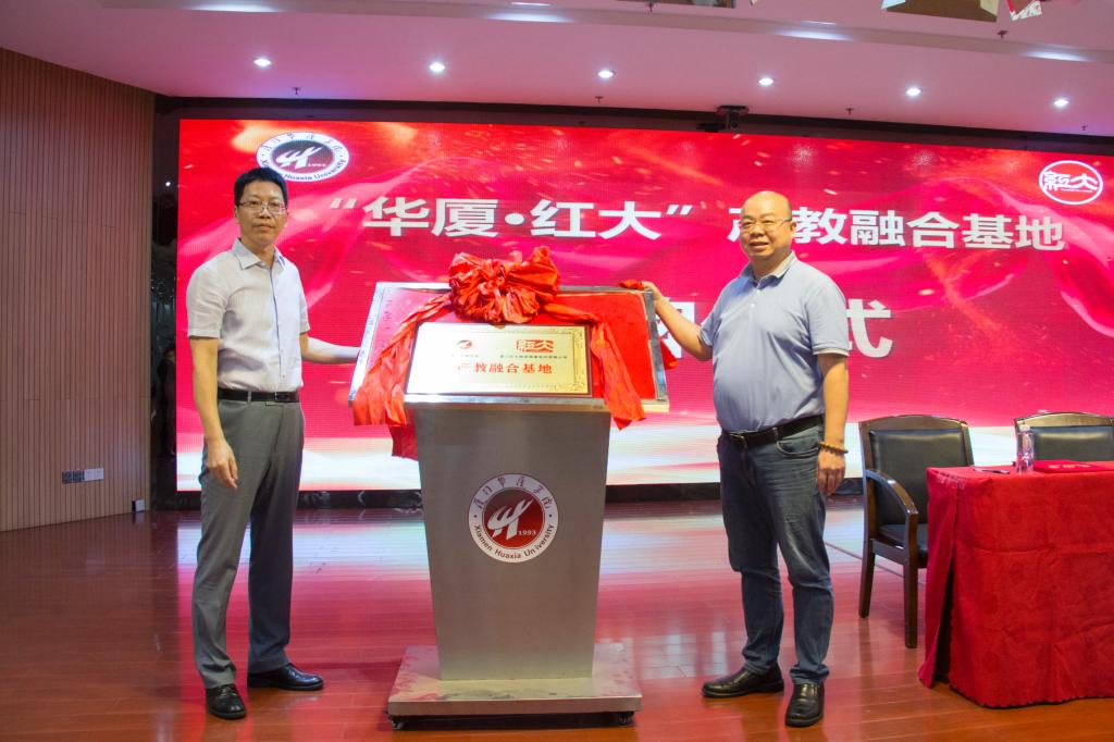 随后进行了产教融合基地的签约仪式和揭牌仪式,校企双方代表还互赠礼物及设立“红大奖学金”。