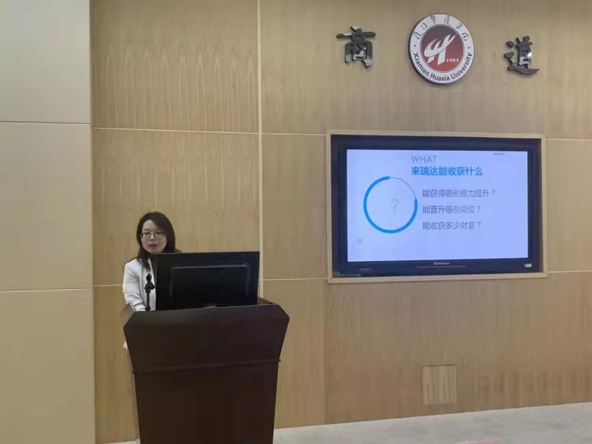 为整合行企校多方优质资源,促进产教融合、校企双元育人,培养国家亟需的金融期货人才,商务管理公司于3月8日下午在商道讲堂举行“华厦·瑞达·奇获”金融科技实验实践教学中心揭牌仪式、“华厦·瑞达”毕业生就业基地授牌仪式和“瑞达奇获创新班”宣讲会。参加本次会议的领导和嘉宾有瑞达期货股份有限公司总裁助理兼人力资源部总监廖延庆、厦门奇获网络科技有限公司CEO林生航、瑞达期货股份有限公司品宣部总监赵丽、互联网机构部负责人晏英、厦门奇获网络科技有限公司市场总监卓隆锋、市场经理陈雨婷,bevictor韦德常务副经理汪婷婷、党总支书记李葳葳、金融与投资管理系主任王文杰、副主任毛月秋、金融学专业负责人朱若然,部分专业教师以及来自金融学、投资学、财务管理、审计学专业的同学参加了本次会议。本次会议由金融与投资管理系专业教师何香培主持。