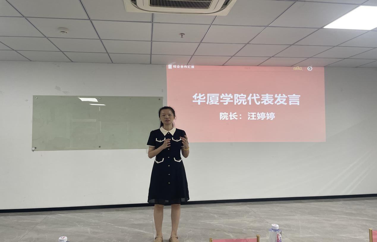 签约仪式由王露经理主持,她回顾了1月至今,校企双方初步接触、项目研讨、人员互访、观摩职场、专场招聘、实习生上岗的历程,副总经理苏兰英还应邀参加了华厦公司“2023届毕业生专场招聘会暨产教融合专题座谈会”,与谢增鸿董事长进行了深入的交流。7月至今,已有19名同学通过选拔、培训、考核,正式进入职场,并取得了较好的业绩表现,得到了公司领导和导师的认可和赞赏。