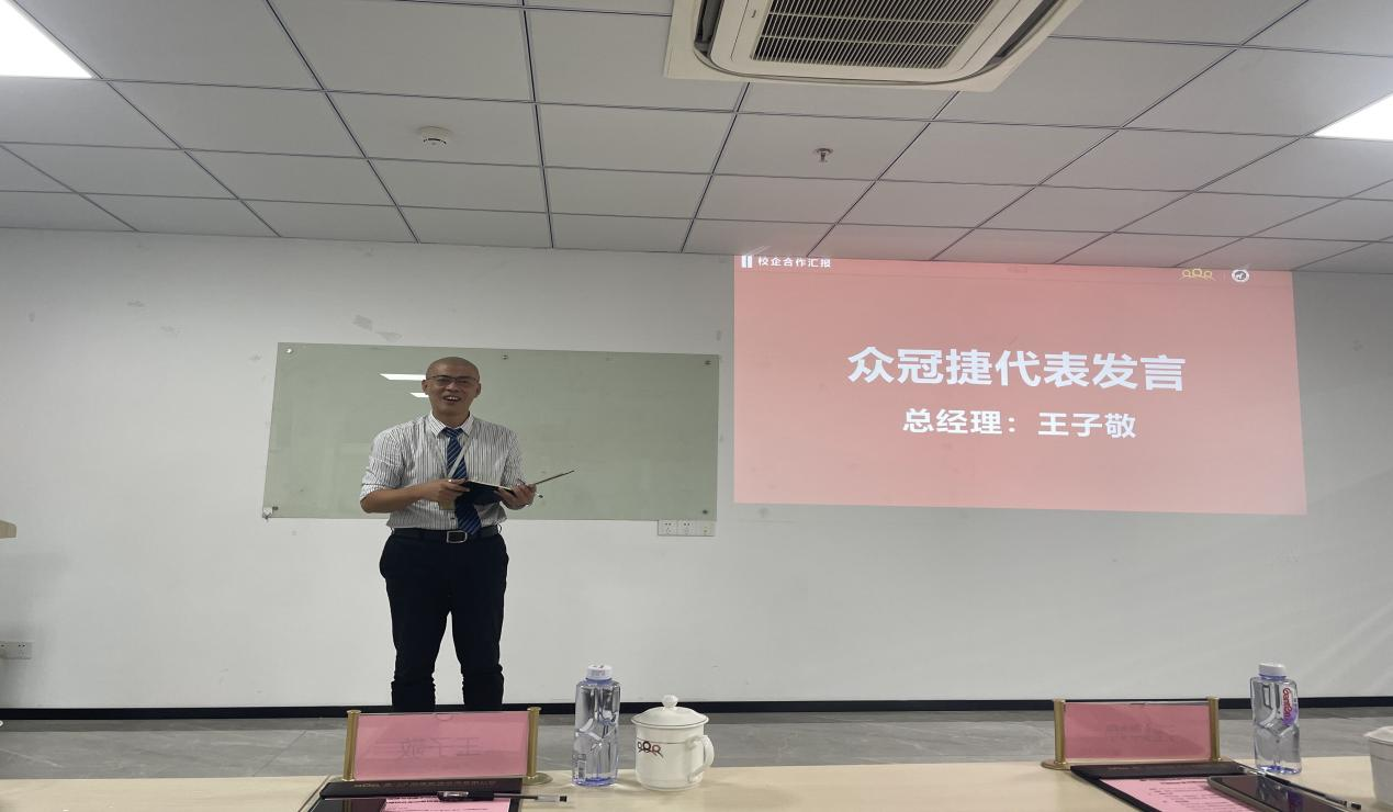 众冠捷总经理王子敬首先对公司领导、老师的到来表示热烈的欢迎,并介绍了众冠捷在金融纠纷调解领域创业十年的发展历程和行业人才需求现状,其次感谢校方的信任,表示愿与华厦领导、老师借助本次搭建的产学研平台,在课程建设、信用风险管理研究和实践、信用教育领域深入合作,共同培养“高素质、高能力、高信仰”的金融纠纷调解人才,为社会和谐创造价值,让员工自信创见未来。