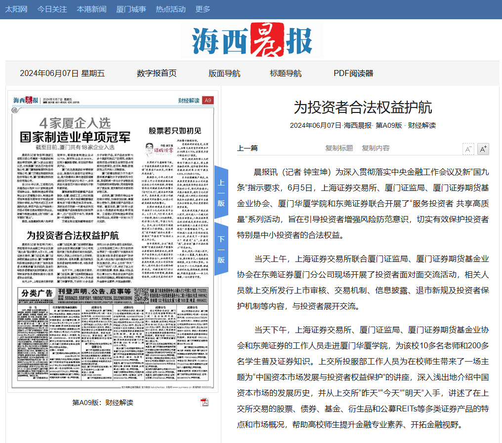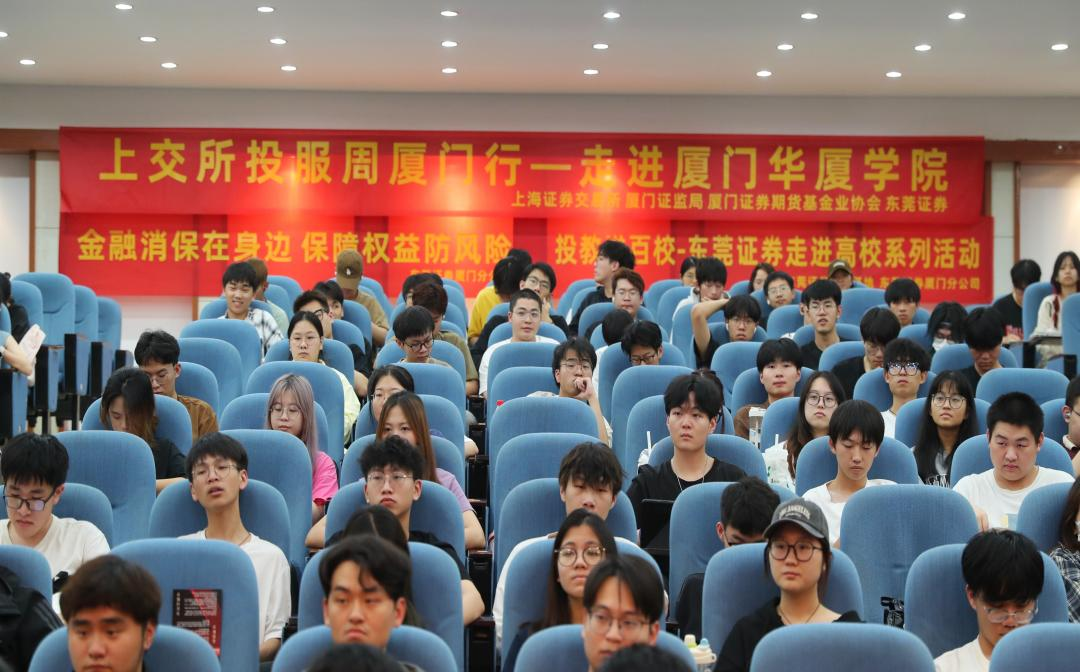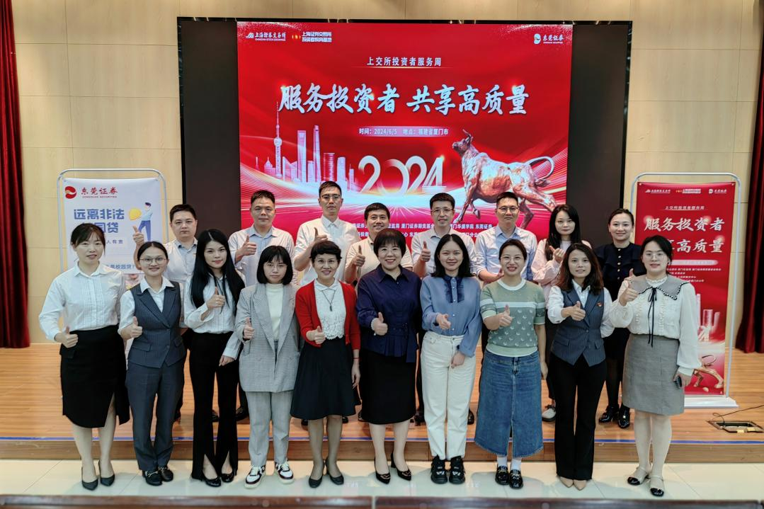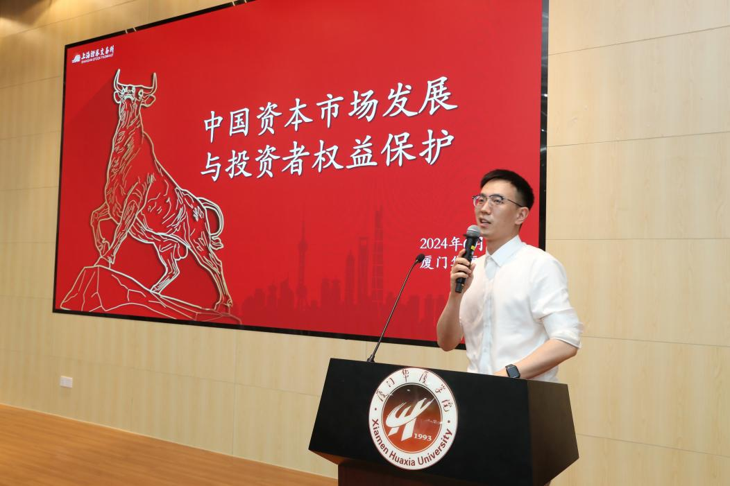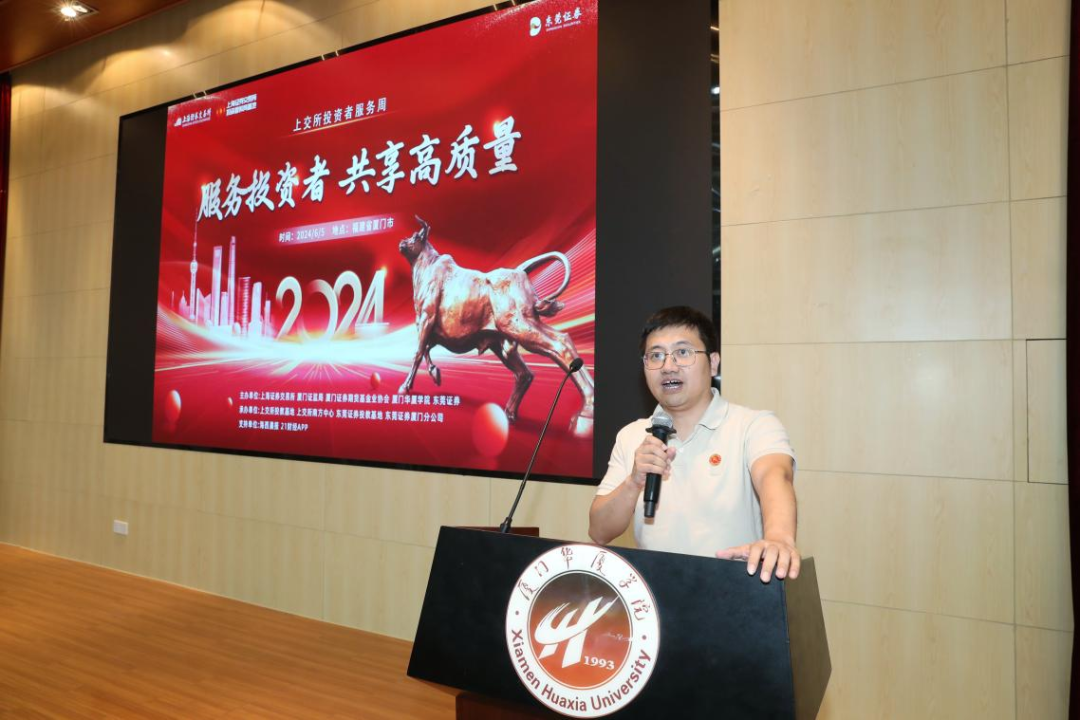 2024年6月5日,由上海证券交易所、厦门证监局、厦门证券期货基金业协会、bevictor韦德官网、东莞证券主办,上海证券交易所投教基地、上海证券交易所南方中心、东莞证券投教基地、东莞证券厦门分公司联合承办,海西晨报、21财经APP支持单位共同举办的“服务投资者,共享高质量”系列活动——《中国资本市场发展与投资者权益保护》专题讲座在bevictor韦德官网明德厅成功举办。上海证券交易所投资者服务部讲师李一男,厦门证券期货基金业协会陈丽婷,东莞证券股份有限公司陈秀云,东莞证券厦门分公司总经理吴攀,东莞证券厦门党支部书记李玉玲,bevictor韦德副经理郭文茂,bevictor韦德金融与投资管理系主任王文杰,bevictor韦德教工第一党支部书记王竹,bevictor韦德冯宇蕾教授、朱若然教授、金融与投资管理系骨干教师,以及来自金融学、投资学等专业200多名员工参加了本次讲座,本次讲座由金融与投资管理系施聪勉老师主持。