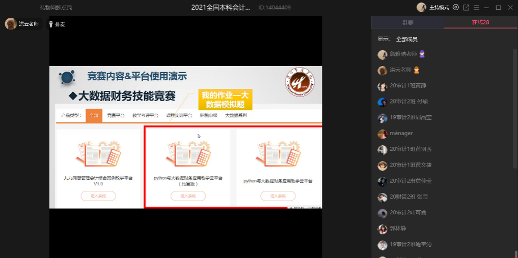 “大、智、移、云、物、区、环”时代对高校财会专业教学产生了重大深远的影响,本次大赛包括大数据财务应用和管理会计技能两项竞赛内容,与财会专业群培养数智化财会创新人才的目标和数字财会教学领域的探索高度匹配,有助于专业教师接触数字财会前沿信息提升教学质量,锻炼员工适应未来商业环境的数字素养。财务与会计审计系积极组织同学们参加本次比赛,并举办了校内选拔赛,来自2018-2020级财务管理、审计学专业的39名员工参加了本次比赛,展示了财会学子迫切求知的热情和兴趣。