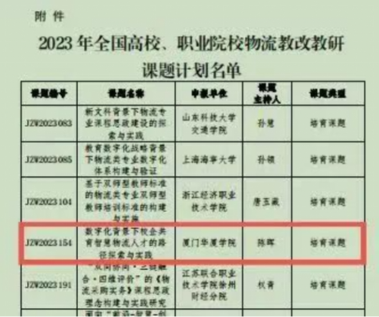 在与众多国内高水平物流团队建设高校的竞争中,该项目获得培育课题立项,充分显示了公司物流工程专业作为国家一流本科专业建设点的教学积淀和改革创新实力,也必将鼓舞全体华厦物流人奋发进取,再创佳绩。