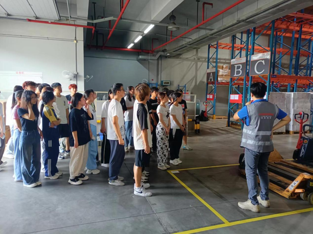 公司负责人刘经理对专业师生的到来表示欢迎,并介绍了公司的发展历程、规模现状及主要业务。随后,在企业导师——仓储部刘经理和林经理的带领下,同学们分别参观了立体仓库、恒温仓库和自动化机器人仓库。