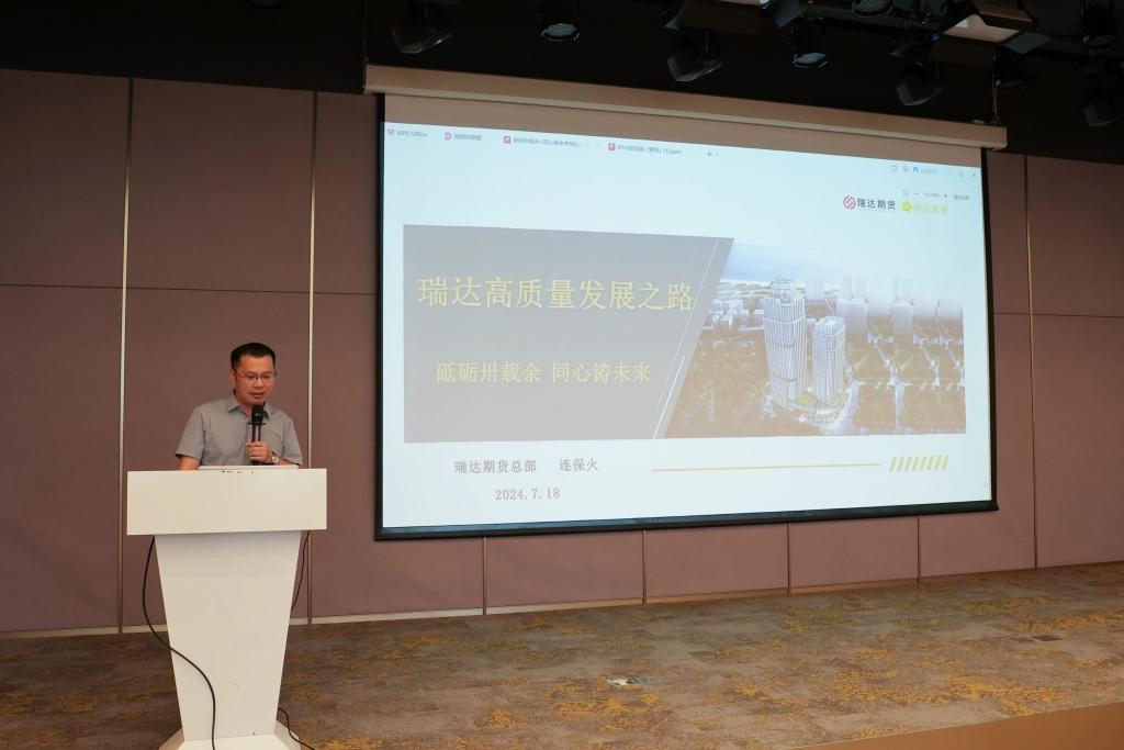 瑞达源发供应链总监艾耀华以“供应链金融的技术与业务发展趋势”为题分享了期货工具对供应链企业管理风险、提升业绩的作用,以及瑞达期货在供应链金融方面的探索经验和展望。他寄语老员工在求学及工作阶段要持续了解宏观经济、精通产业基本面、熟知区域供需、锻炼数据分析能力,在竞争日趋激烈的职场中塑造自身的核心竞争力。