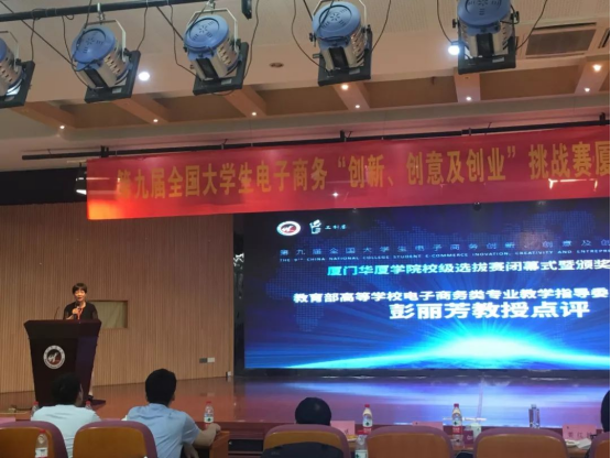 本次比赛分为8分钟主题路演和7分钟答辩两个环节。在路演环节,选手们选材新颖、台风稳健、娓娓道来。在答辩环节,针对评委提出的相关问题,选手们对答如流,凭借超群的表现力获得现场评委与观众的一致好评。经过紧张激烈的角逐,大赛分别决出了特等奖4名、一等奖8名、二等奖24名、三等奖34名。教育部电子商务类专业教学指导委员会委员、厦门大学博士生导师彭丽芳教授对选手们进行精彩的赛后点评。