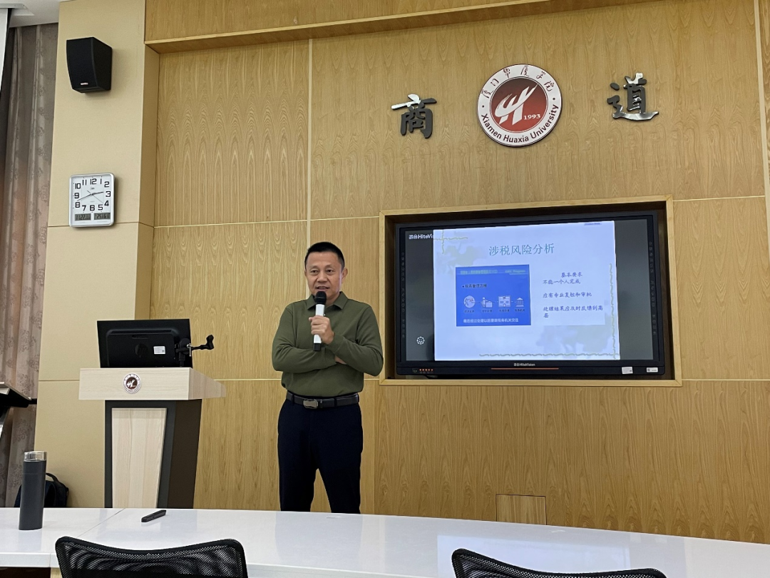11月22日,财务与会计审计系特邀厦门金心税务师事务所有限公司党支部书记、执行董事、所长杨文胜给本系教师和员工带来了一场别开生面的专题讲座——《涉税风险与控制》。