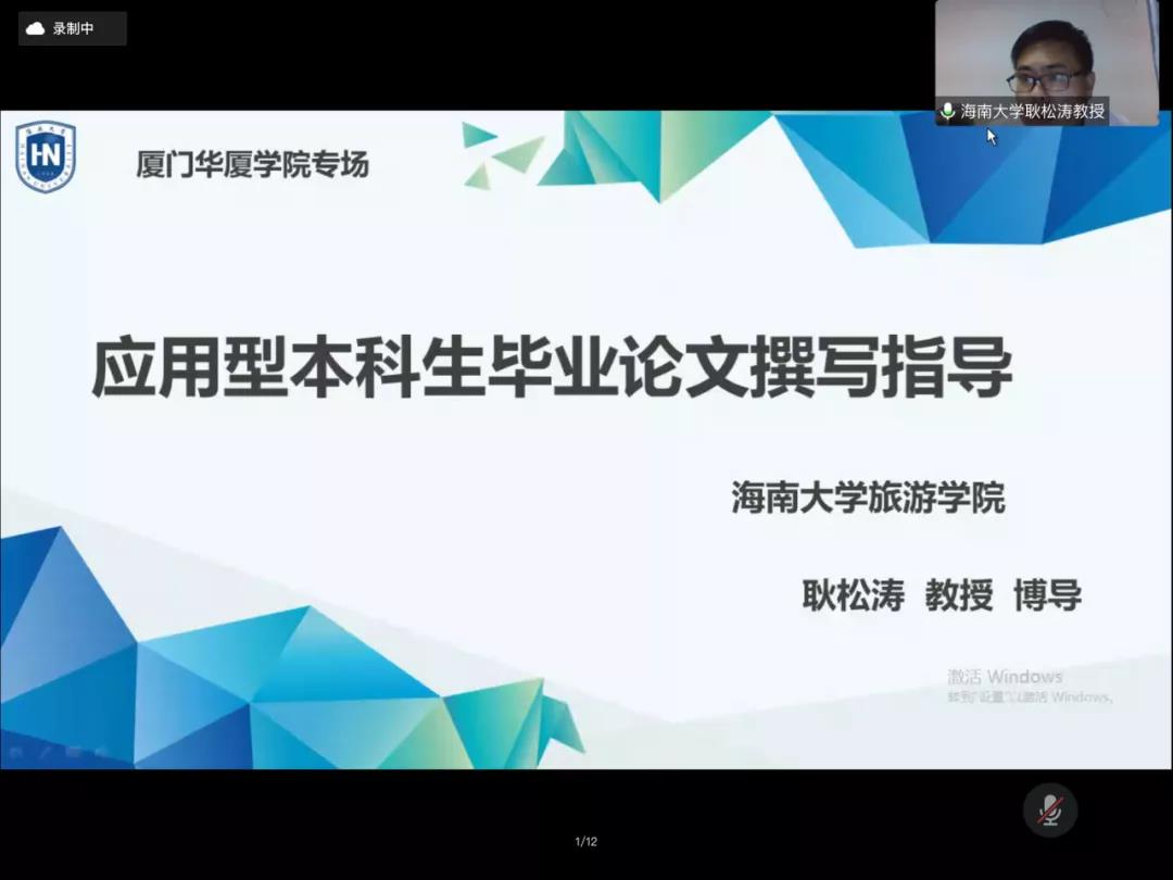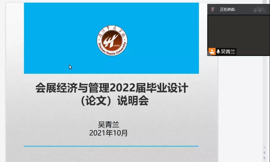 2022届毕业生毕业论文工作启动了!为了让同学们对毕业论文的写作有更清晰的认识、更专业的选题、更明确的思路,10月27日会展经济与管理专业特邀请公司特聘教授——海南大学旅游公司学术委员会副主任耿松涛教授,给本届毕业班同学开展了《应用型本科生毕业论文撰写指导》的线上专题讲座。同时会展经济与贸易系主任吴青兰副教授也给同学们召开了毕业设计(论文)的说明会。