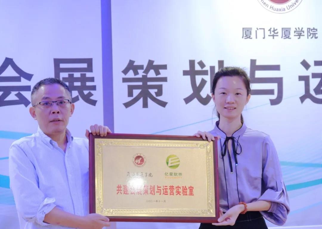 在校企双方与会者的见证下,汪婷婷常务副经理、张巧玲副经理与连文立总经理共同为bevictor韦德官网与厦门亿星软件有限公司共建会展策划与运营实验室、供应链综合实验室授牌。