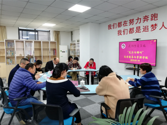 最后,张剑辉书记以“缘”、“情”、“愿”三个字与师生共勉,勉励全体师生自豪自觉的讲好一分钟华厦好故事,商管好故事,与华厦共发展。