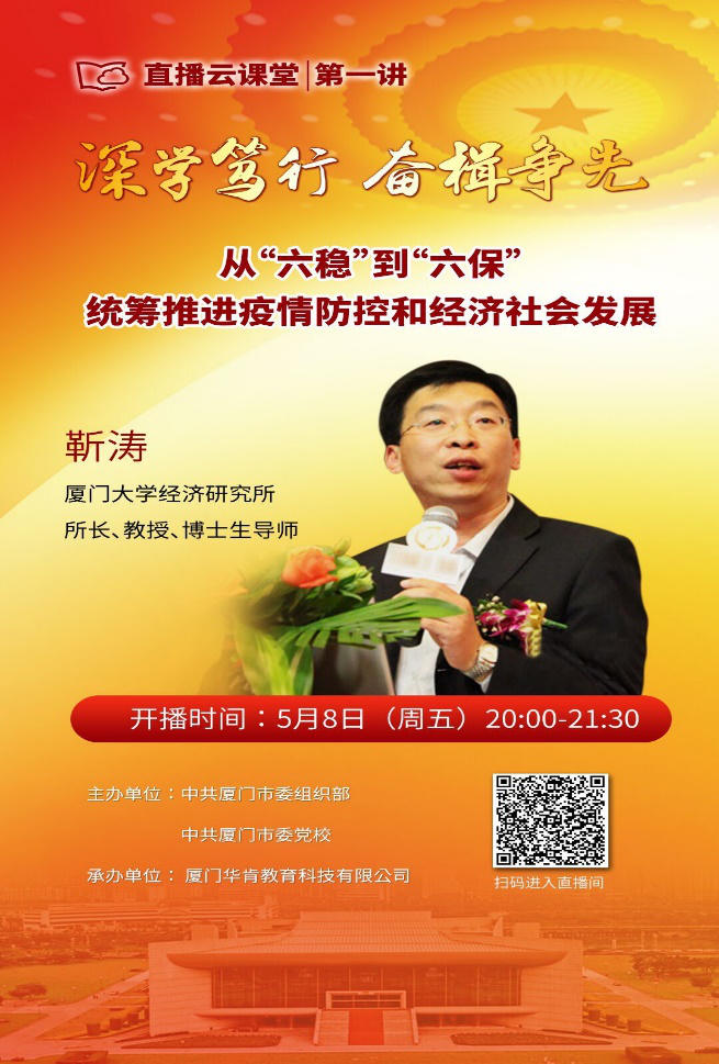 通过此次“深学笃行,奋楫争先”的直播云课堂我了解了当前形势下厦门的经济大致走向以及未来的发展展望。从六稳到六保,坚定实施扩大内需战略,维护经济发展和社会稳定大局,统筹推进疫情防控下有序的复工复产,疫情给厦门市带来了一定的经济影响,我们要奋力夺取疫情防控和经济社会发展“双胜利”,做好服务保障工作,守住底线,稳中求进。传统的行业要实现自我的突破,高新产业要加速推进创新,各行各业都应该逐步恢复生产。政府应该多给予企业关注,帮助中小微企业度过难关,使经济逐步恢复以往状态。