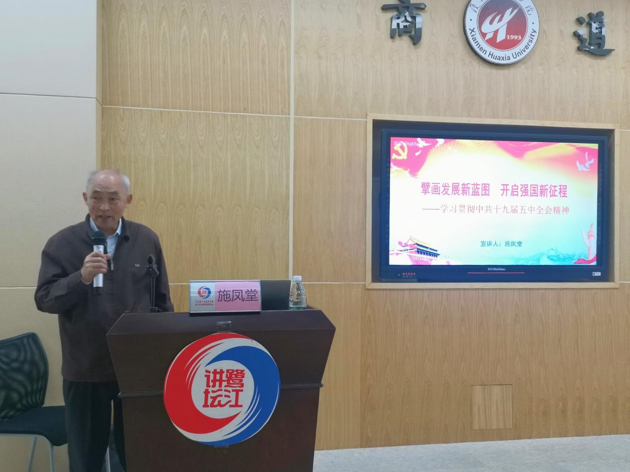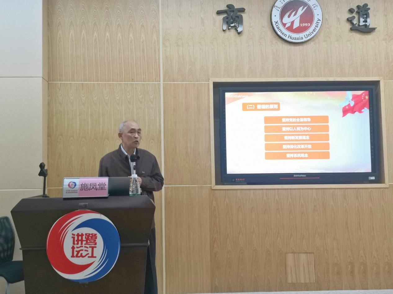 施凤堂教授从“决胜小康,开启全面建设现代化新征程”、“顶层设计,‘十四五’主要目标和重点任务”、“加强领导,确保中央决策部署落到实处”、“特区使命,当好现代化建设排头兵”四个方面回顾了我国现阶段取得的巨大成就,阐述了“十四五”规划的宏伟蓝图。