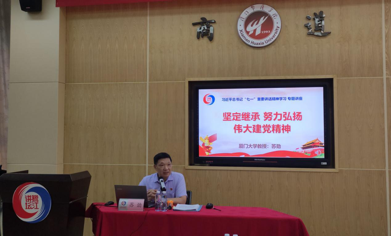 为深入学习宣传贯彻习近平总书记“七一”重要讲话精神,进一步推动党史学习教育走深走实。11月5日下午,厦门大学苏劲教授莅临公司商道讲堂,开展《坚定继承,努力弘扬伟大建党精神》主题讲座。讲座由公司党总支书记李葳葳主持。