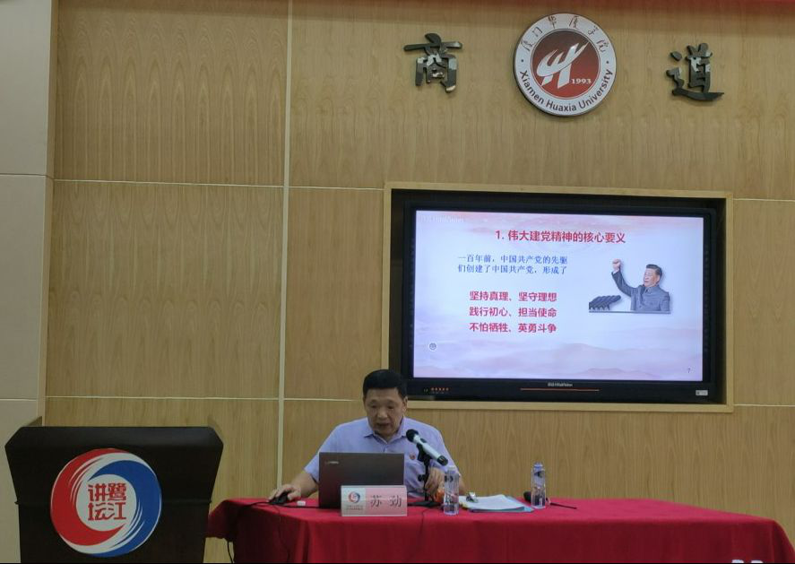 (苏劲教授向师生阐述伟大建党精神的核心要义)