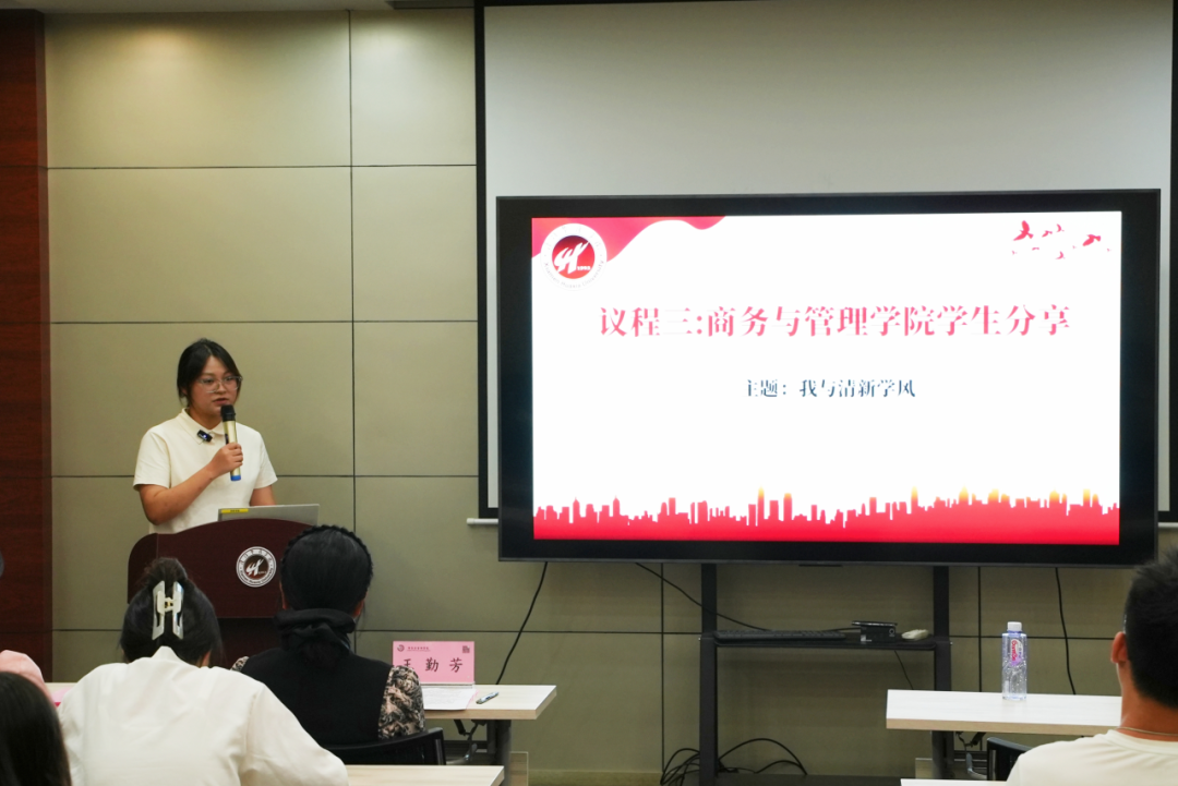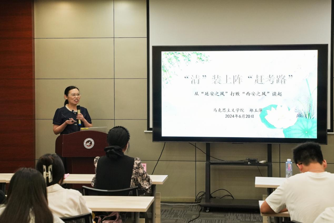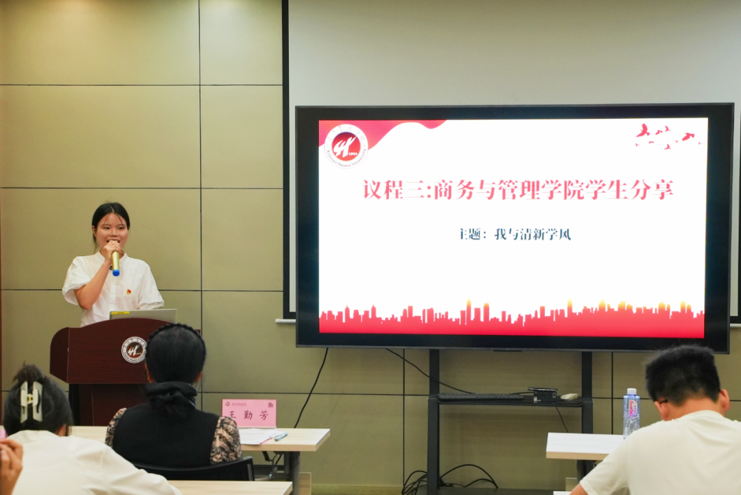 公司党总支书记李葳葳主持员工分享和专家点评环节。在“我与清新学风”交流研讨环节,公司党员员工代表傅琳茜、陈梦丽分别围绕“我与清新学风并肩前行”、“让清新学风点亮求知之路”展开分享,表示清新学风是同学们自强、自尊、自律、自爱的动力支柱,更是青年员工奋发向上、努力成才的强大精神力量。