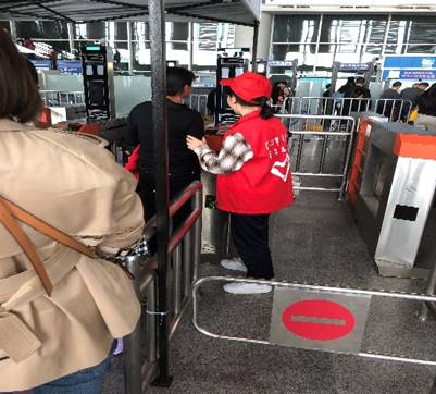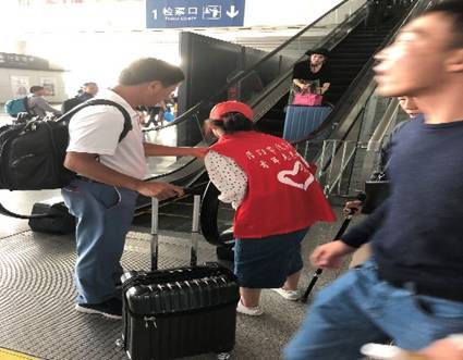青春志愿行,温暖陌生人。工作人员对志愿者安排了检票口、扶梯口、进站口、售票厅、出站口和服务驿站六个服务点,为乘客们提供帮助。在检票口,我们的志愿者协助工作人员检票,大大提高了乘客的上车速度。扶梯口,志愿者维持电梯秩序,保证了乘客的安全,避免了意外的发生。小白鹭服务台,志愿者帮助乘客查询车次,对乘客的问题进行答疑。进站口,志愿者一遍遍地向乘客演示闸机的使用方式,节省了乘客排队时间。售票厅,志愿者帮助一些乘客购票,节省了乘客的时间。一个人带动一批人,一批人带动整个社会,最终让整个社会洋溢着奉献,充满着爱。有困难,找志愿者;需帮助,找志愿者。真正的快乐、发至内心的快乐,不是用金钱能买来的!这就是志愿者!这就是志愿服务精神!