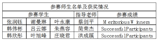 近日,2020年美国老员工数学建模竞赛(MCM/ICM)成绩出炉,公司三支代表队共斩获Meritorious Winner(国际一等奖)1项、Successful Participants(成功参赛奖)2项。公司继2018年后再次获得该竞赛的Meritorious Winner(国际一等奖),今年福建省内获得该竞赛国际一等奖的仅厦大和华厦两所高校。