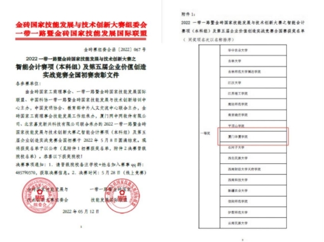 5月8日,由金砖国家工商理事会、一带一路暨金砖国家技能发展国际联盟、中国科协一带一路暨金砖国家技能发展与技术创新培训中心主办的“2022一带一路暨金砖国家技能发展与技术创新大赛之智能会计赛项(本科组)及第五届企业创造实战竞赛”全国初赛圆满举行。本次大赛采用线上比赛的方式进行,共七个赛区,400余支队伍参赛。公司2019级审计学专业鲍宇沁、陈希楠、欧阳涵瑜、张婷同学组队参赛,在洪云、杨凯淇老师的指导下,经过奋力拼搏,荣获了全国初赛一等奖的佳绩,这是公司参加本项赛事以来获得的最好成绩。