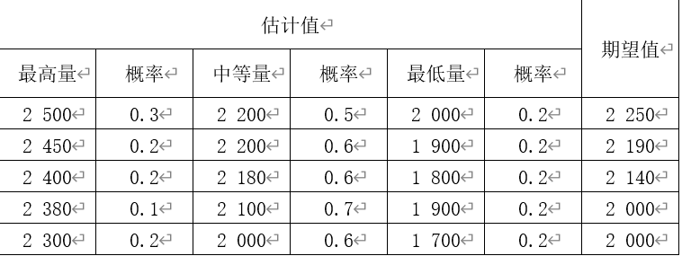 下例为某公司对某月电视机销售量运用主观概率法所做的预测: