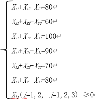 X11=10 X12=70 X13=0 X21=0 X22=0 X23=60 X31=80 X32=0 X33=20