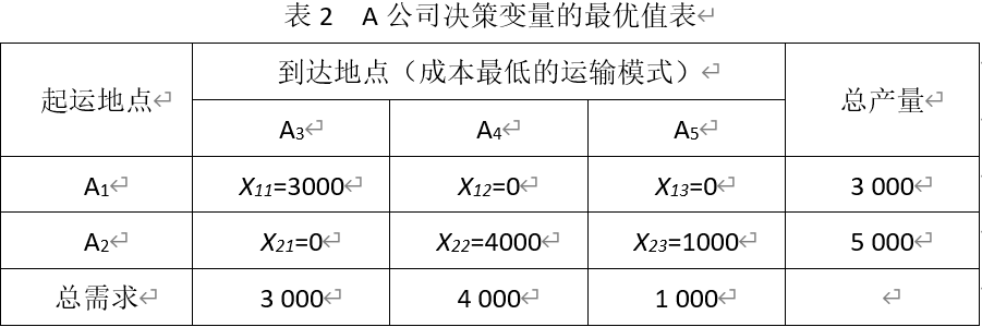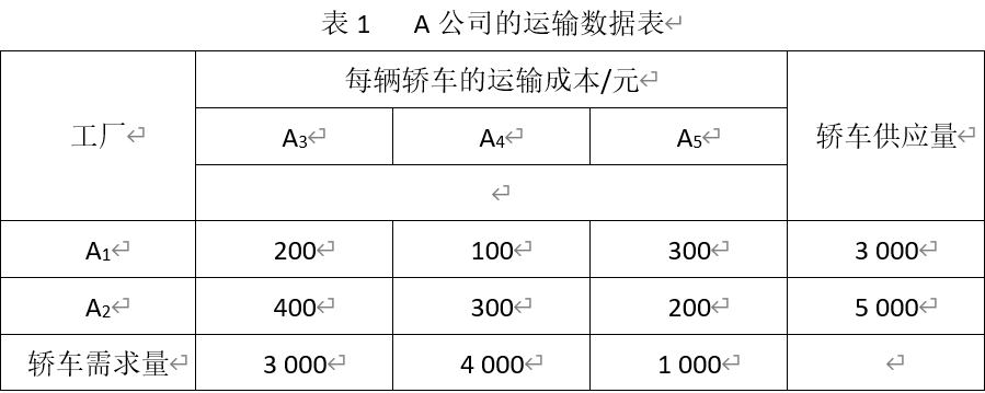 运输问题所需要的数据仅仅是供应量、需求量和单位成本。这些就是模型参数。如果一个问题可以完全描述成表1所示的参数表形式,并且符合需求假设和成本假设,那么这个问题(不管其中是否涉及运输)都适用于运输问题模型,最终目的都是要使配送的总成本最小。这个模型的参数都包含在参数表中。