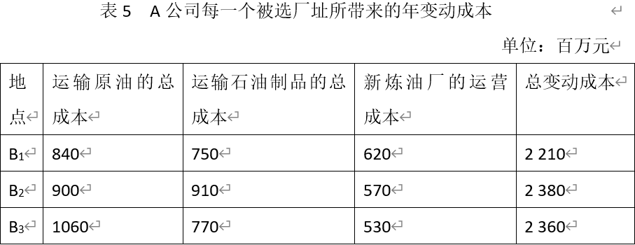 经过比较总变动成本,最终可以选择在B1建造新的炼油厂。