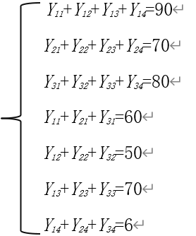 设Yij(i=1,2,3, j=1,2,3,4) 为从炼油厂运输到配送中心的石油制品数量。