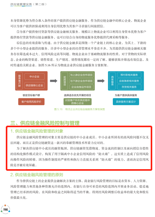 P196 三、1、供应链金融风险管理的对象 第一段修改为:供应链金融风险管理的对象主要是供应链的中小微企业成员,守住不发生系统性风险的底线格外重要。我国大力支持中小微企业发展,实施深化简政放权、放管结合、优化服务改革的策略,中小企业所固有的高风险问题不仅无法回避,而且正是供应链融资这一新兴的风险管理技术所着力应对的。 |