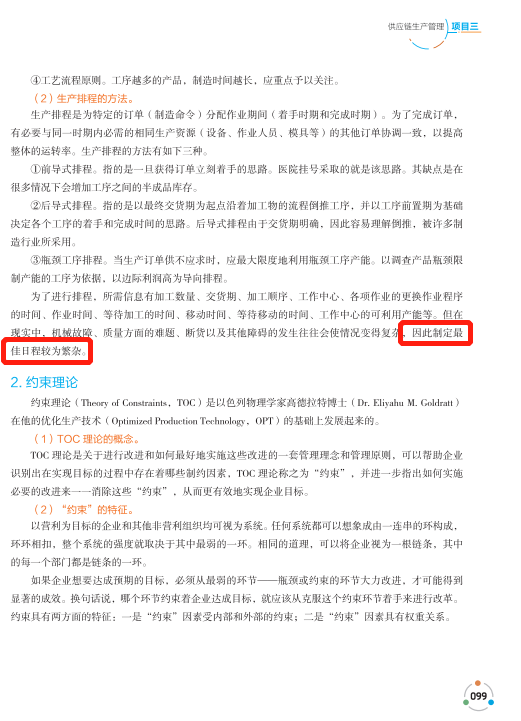 P99 (2)生产排成方法 将最后一段的最后一句“因此制定最佳日程较为繁杂”改为“因此,应制定合理的生产日程,以提高全要素生产率,提升产业链供应链韧性和安全水平,推动高质量发展。” |